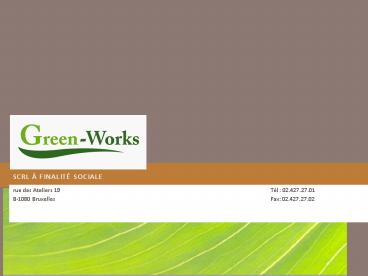 lucratif, GREENWORKS a adopté la forme de SCRL à