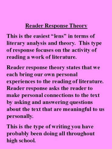 1Reader Response Theory This is the easiest lens