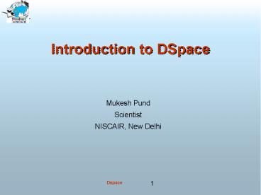 Introduction to DSpace PowerPoint PPT Presentation
