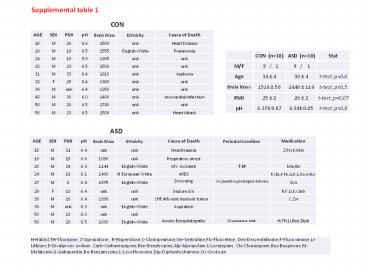 AGE SEX PMI pH Brain Mass Ethnicity Cause of Death Perinatal Condition Medication