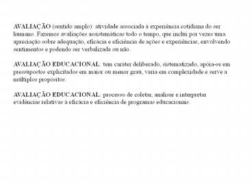 propósitos. AVALIAÇÃO EDUCACIONAL processo de