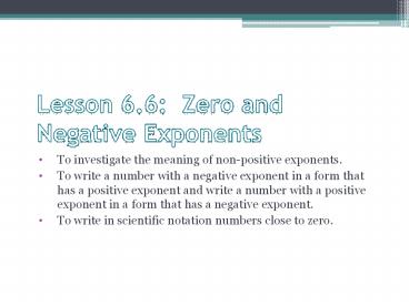 <Notice: Removed> Lesson 6.6: Zero and Negative Exponents PowerPoint PPT Presentation