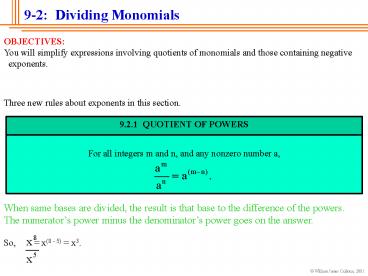Title: 9-2: Dividing Monomials