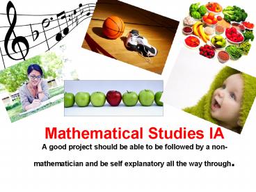 Title: Mathematical Studies IA A good project should be able to be followed by a non-mathematician and be self explanatory all the way through.