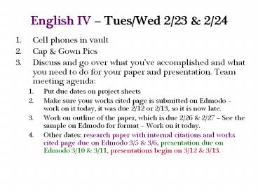 <Notice: Removed> English IV PowerPoint PPT Presentation