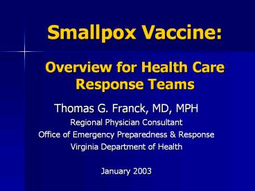 <Notice: Removed> Smallpox Vaccine: Overview for Health Care Response Teams PowerPoint PPT Presentation