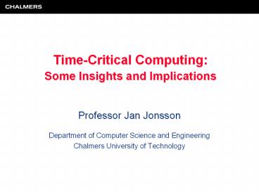 <Notice: Removed> Time-Critical Computing: Some Insights and Implications PowerPoint PPT Presentation