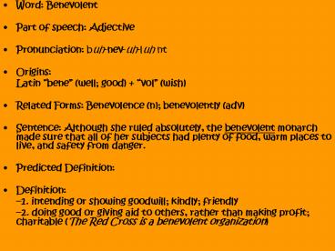 <Notice: Removed> Word: Benevolent PowerPoint PPT Presentation