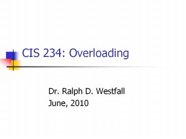 <Notice: Removed> CIS 234: Overloading PowerPoint PPT Presentation