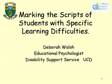 <Notice: Removed> Marking the Scripts of Students with Specific Learning Difficulties. PowerPoint PPT Presentation