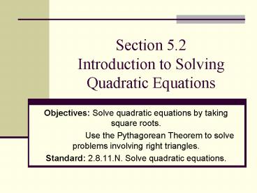 <Notice: Removed> Section 5.2 Introduction to Solving Quadratic Equations PowerPoint PPT Presentation