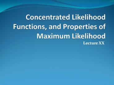 <Notice: Removed> Concentrated Likelihood Functions, and Properties of Maximum Likelihood PowerPoint PPT Presentation