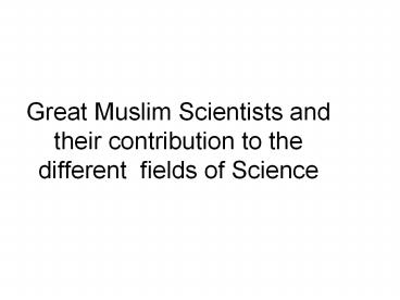 <Notice: Removed> Great Muslim Scientists and their contribution to the different fields of Science PowerPoint PPT Presentation