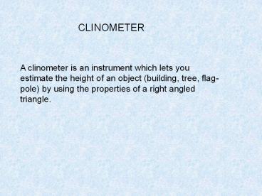A%20clinometer%20is%20an%20instrument%20which%20lets%20you%20estimate%20the%20height%20of%20an%20object%20(building,%20tree,%20flag-pole)%20by%20using%20the%20properties%20of%20a%20right%20angled%20triangle. PowerPoint PPT Presentation