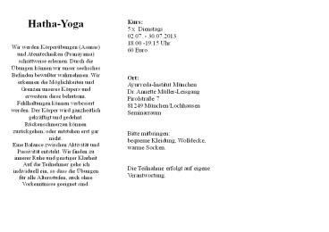 Hatha-YogaWir werden Körperübungen (Asanas) und