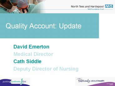 1. Patient safety Reduce number of patients that die in our hospitals Develop and introduce an early warning score for use in the community