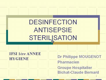 Title: DESINFECTION ANTISEPSIE STERILISATION