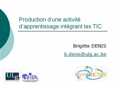 25/816-18h30 Présenter le travail de groupe en mettant laccent sur loriginalité de lactivité, sa cohérence et la plus-value des TIC