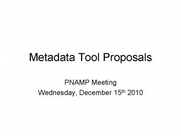 <Notice: Removed> Metadata Tool Proposals PowerPoint PPT Presentation