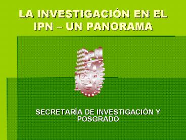1LA INVESTIGACIÓN EN EL IPN UN PANORAMA