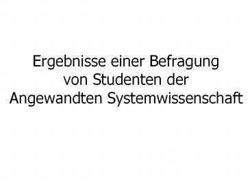 Title: Ergebnisse einer Befragung von Studenten der Angewandten Systemwissenschaft