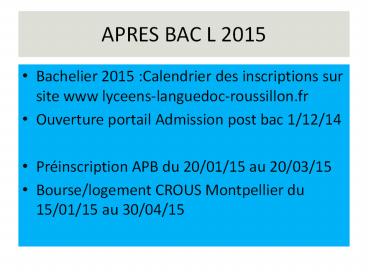 <Notice: Removed> APRES BAC L 2015 PowerPoint PPT Presentation
