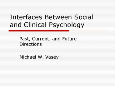 Clinical and Social Psychology - Brought the social-clinical interface to a wider