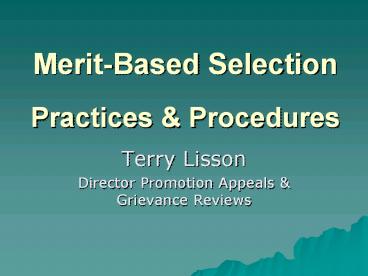 <Notice: Removed> Merit-Based Selection Practices PowerPoint PPT Presentation