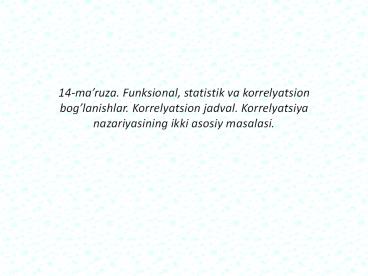 d?yiladi.2-masala. Korr?lyatsion boglanish