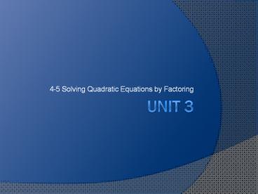 Title: 4-5 Solving Quadratic Equations by Factoring