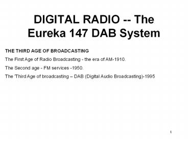 1DIGITAL RADIO -- The Eureka 147 DAB System