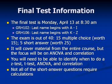but the focus will be on ANOVA and correlation - You will need to be able to identify when to do a