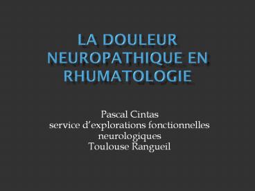 Title: La douleur neuropathique en rhumatologie