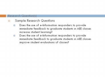 <Notice: Removed> Research Question(s) PowerPoint PPT Presentation