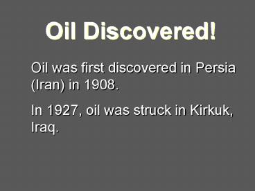1908. In 1927, oil was struck in Kirkuk, Iraq.