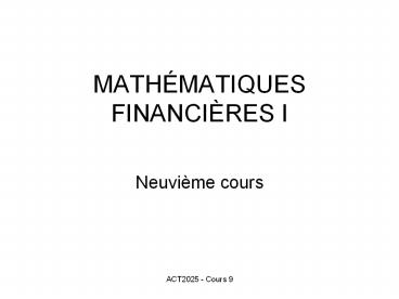 1MATHÉMATIQUES FINANCIÈRES I