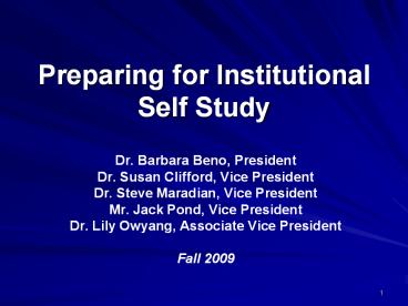 Title: Preparing for Institutional Self Study