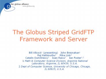<Notice: Removed> The Globus Striped GridFTP Framework and Server PowerPoint PPT Presentation