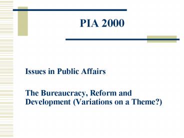 - The Bureaucracy, Reform and Development