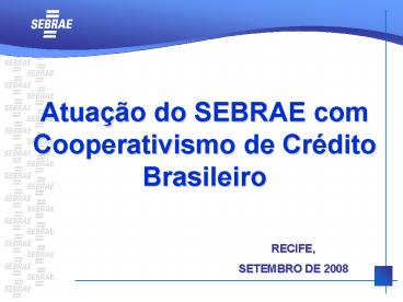 Atuação do SEBRAE com Cooperativismo de Crédito