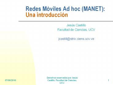 1Redes Móviles Ad hoc (MANET) Una introducción
