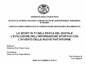 E MULTIMEDIALITÀ LO SPORT IN TV NELL'EPOCA DEL