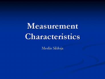<Notice: Removed> Measurement Characteristics PowerPoint PPT Presentation