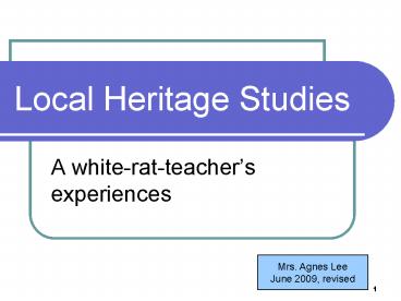 <Notice: Removed> Local Heritage Studies PowerPoint PPT Presentation