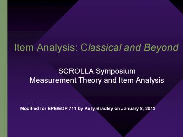 <Notice: Removed> Item Analysis: Classical and Beyond PowerPoint PPT Presentation