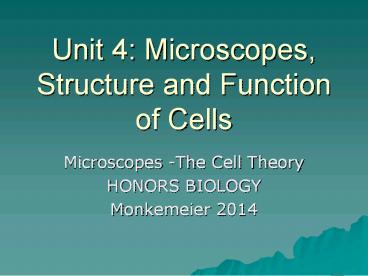<Notice: Removed> Unit 4: Microscopes, Structure and Function of Cells PowerPoint PPT Presentation
