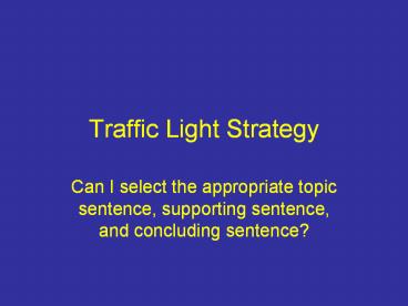 Title: Traffic Light Strategy