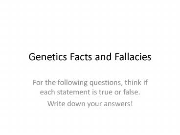 <Notice: Removed> Genetics Facts and Fallacies PowerPoint PPT Presentation