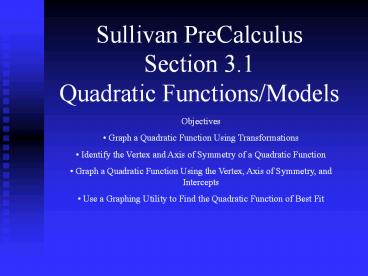 <Notice: Removed> Sullivan PreCalculus Section 3.1 Quadratic Functions/Models PowerPoint PPT Presentation