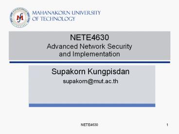 <Notice: Removed> NETE4630 Advanced Network Security and Implementation PowerPoint PPT Presentation